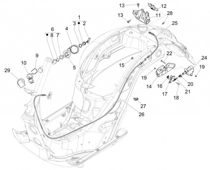On-Off lock body -PIAGGIO- Vespa GT 250 (ZAPM45102), Vespa GT L 125 (ZAPM31100, ZAPM31101), Vespa GT L 200 (ZAPM31200), Vespa GTS 125 (ZAPM31300), Vespa GTS 250 (ZAPM45100, ZAPM45101), Vespa GTS 300 (ZAPM45200, ZAPM45202), Vespa GTS Super 125 (ZAPM45300,