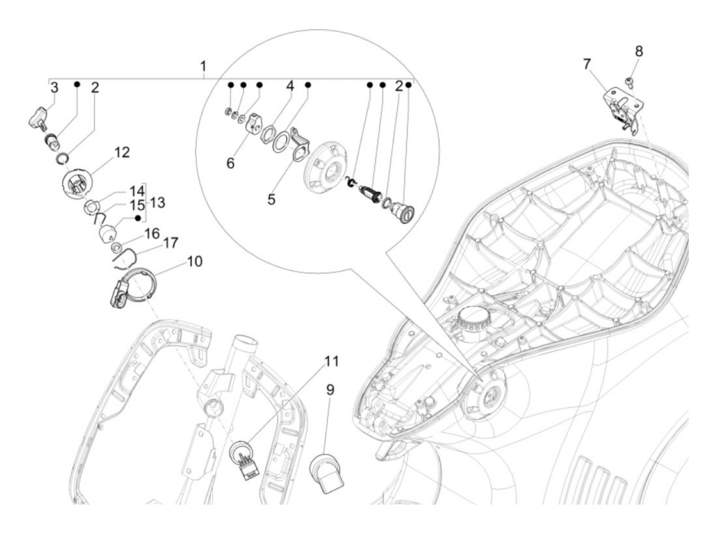 Ignition switch grommet -PIAGGIO- Vespa GT 250 (ZAPM45102), Vespa GT L 125 (ZAPM31101), Vespa GTS 125 (ZAPM31300), Vespa GTS 250 (ZAPM45100, ZAPM45101), Vespa GTS 300 (ZAPM45200, ZAPM45202), Vespa GTS Super 125 (ZAPM45300, ZAPM45301), Vespa GTS Super 300