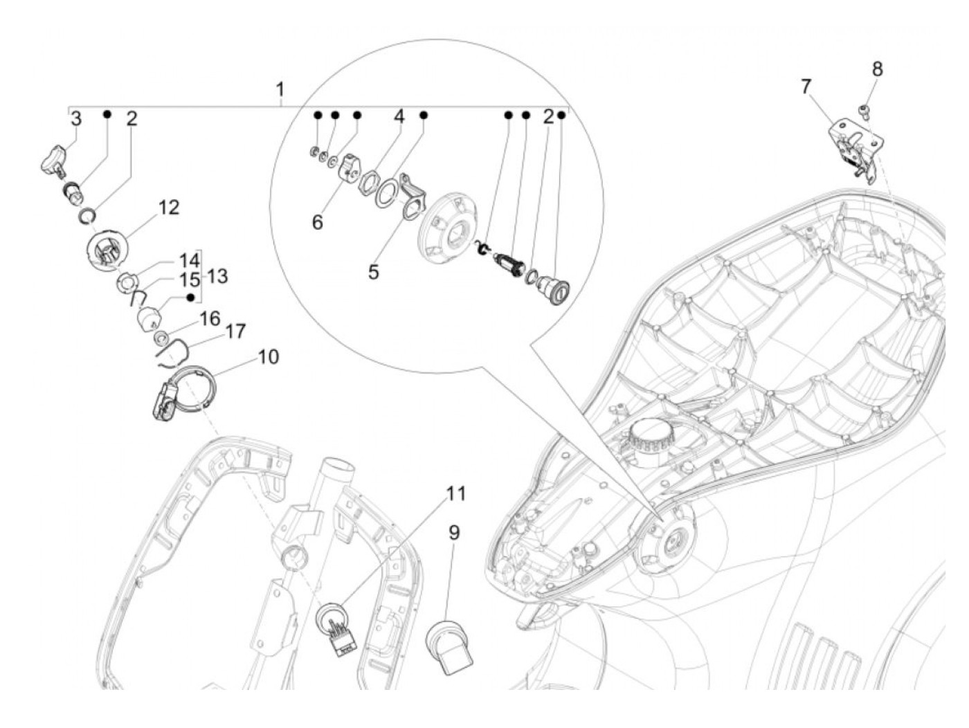 Ignition switch grommet -PIAGGIO- Vespa GT 250 (ZAPM45102), Vespa GT L 125 (ZAPM31101), Vespa GTS 125 (ZAPM31300), Vespa GTS 250 (ZAPM45100, ZAPM45101), Vespa GTS 300 (ZAPM45200, ZAPM45202), Vespa GTS Super 125 (ZAPM45300, ZAPM45301), Vespa GTS Super 300