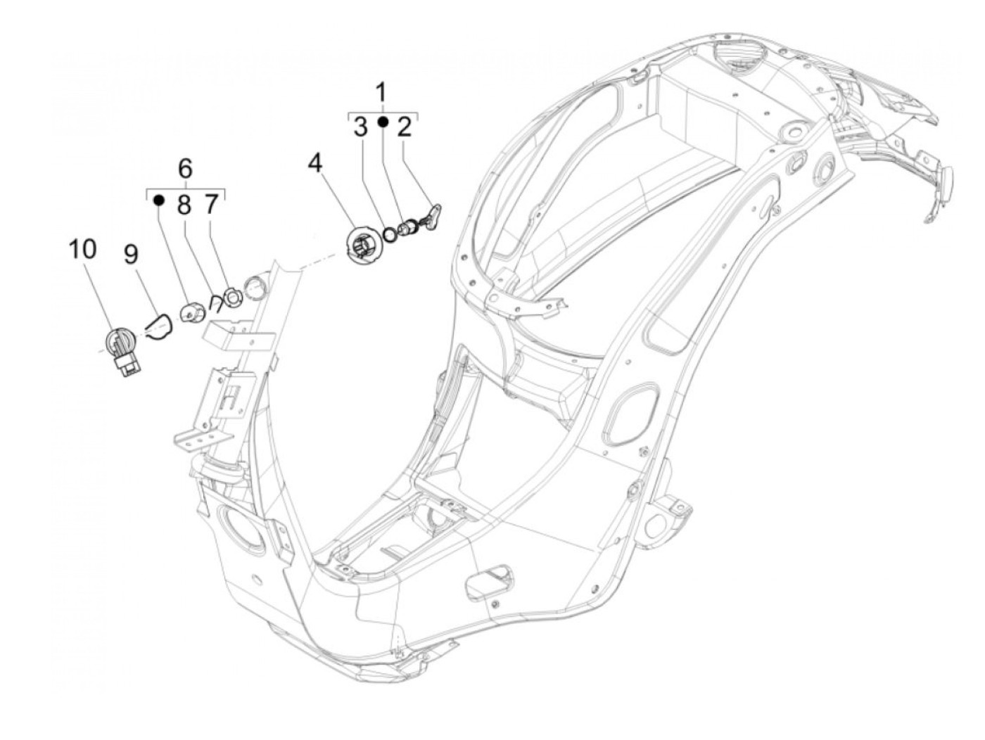 On-Off lock body -PIAGGIO- Vespa GTS 125 (ZAPMA3100, ZAPMA3200, ZAPMA3700), Vespa GTS 150 (ZAPMA3200, ZAPMA3100), Vespa GTS 300 (ZAPMA3300), Vespa GTS HPE 300 (ZAPMA3600, ZAPMD310), Vespa GTS Super 125 (ZAPMA3100, ZAPMA3200, ZAPMA3700), Vespa GTS Super 30