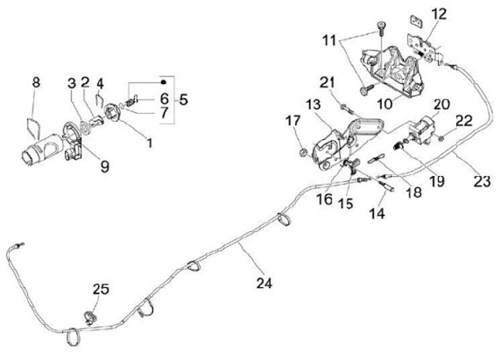Cable (short) for seat lock -PIAGGIO- Vespa GT 250 (ZAPM45102), Vespa GT L 125 (ZAPM31100, ZAPM31101), Vespa GT L 200 (ZAPM31200), Vespa GTS 125 (ZAPM31300, ZAPMA3100, ZAPMA3200, ZAPMA3700), Vespa GTS 150 (ZAPMA3200, ZAPMA3100), Vespa GTS 250 (ZAPM45100,