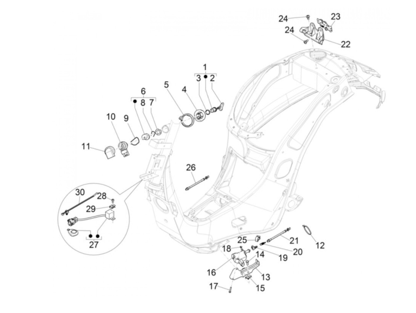 On-Off lock body -PIAGGIO- Vespa GTS 125 (ZAPMA3100, ZAPMA3200, ZAPMA3700), Vespa GTS 150 (ZAPMA3200, ZAPMA3100), Vespa GTS 300 (ZAPMA3300), Vespa GTS HPE 300 (ZAPMA3600, ZAPMD310), Vespa GTS Super 125 (ZAPMA3100, ZAPMA3200, ZAPMA3700), Vespa GTS Super 30