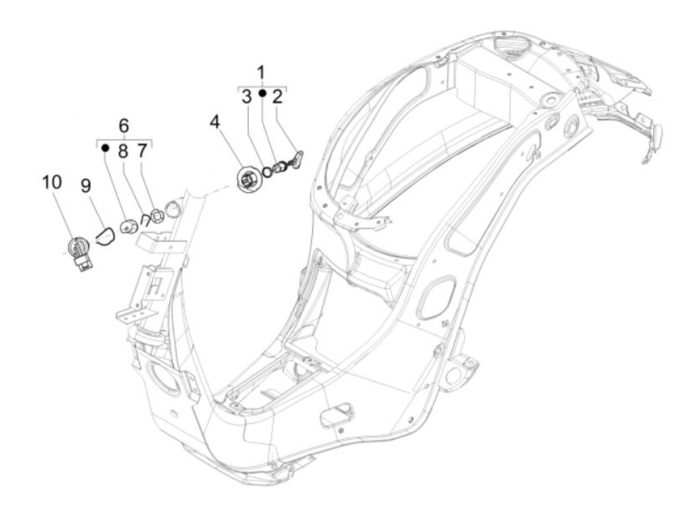 On-Off lock body -PIAGGIO- Vespa GTS 125 (ZAPMA3100, ZAPMA3200, ZAPMA3700), Vespa GTS 150 (ZAPMA3200, ZAPMA3100), Vespa GTS 300 (ZAPMA3300), Vespa GTS HPE 300 (ZAPMA3600, ZAPMD310), Vespa GTS Super 125 (ZAPMA3100, ZAPMA3200, ZAPMA3700), Vespa GTS Super 30