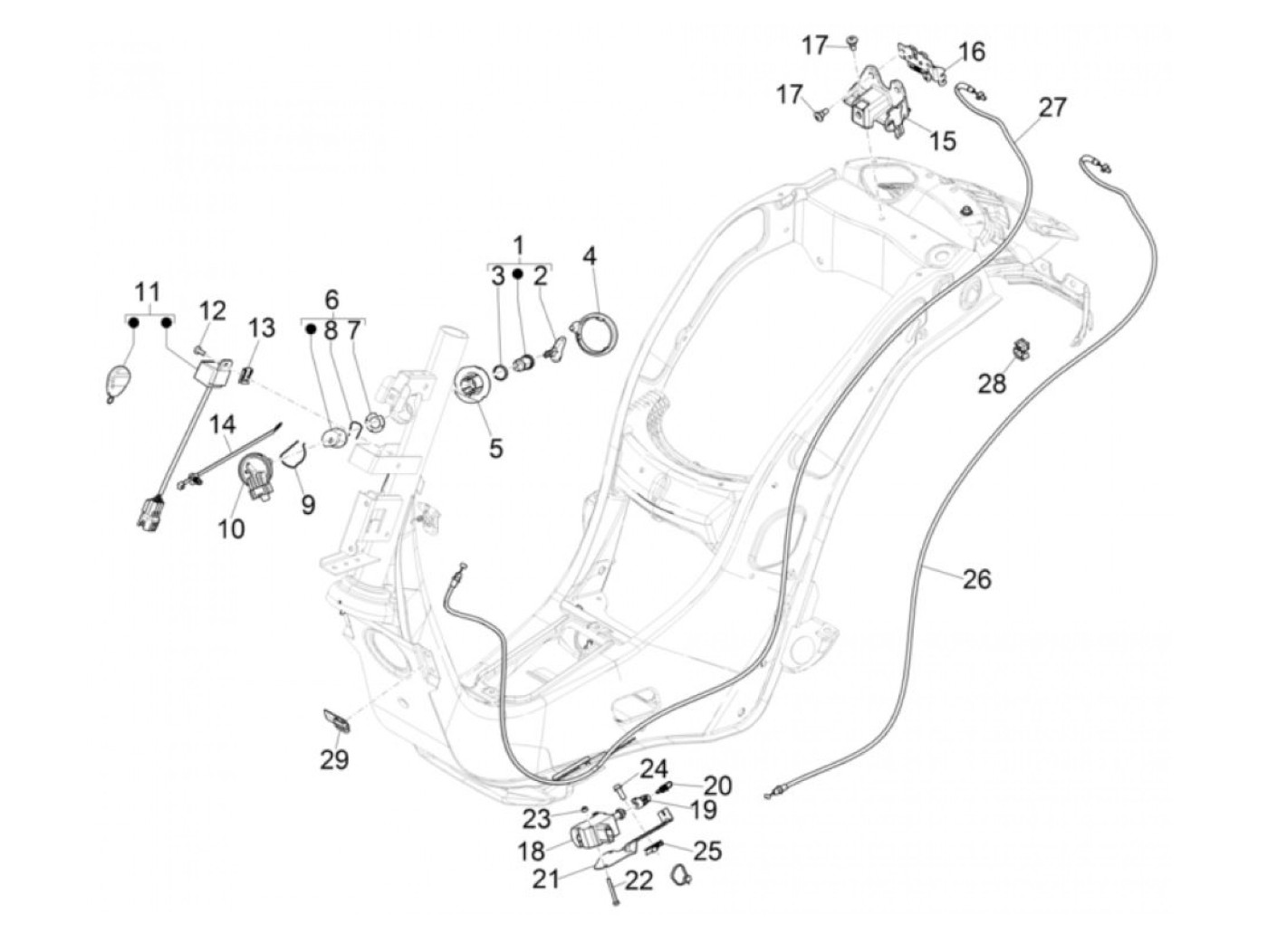 Ignition switch -PIAGGIO- Vespa GTS 125 (ZAPMA3100, ZAPMA3200, ZAPMA3700), Vespa GTS 150 (ZAPMA3100, ZAPMA3200), Vespa GTS 300 (ZAPMA3300), Vespa GTS HPE 300 (ZAPMA3600, ZAPMD310), Vespa GTS Super 125 (ZAPMA3100, ZAPMA3200, ZAPMA3700), Vespa GTS Super 300