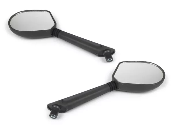 Original Piaggio mirror for the last series of Vespa COSA models. This model series, also known as Cosa2 or Cosa FL (for facelift), can be easily recognised by the all-round plastic frame of the bench seat painted in the same colour as the vehicle.