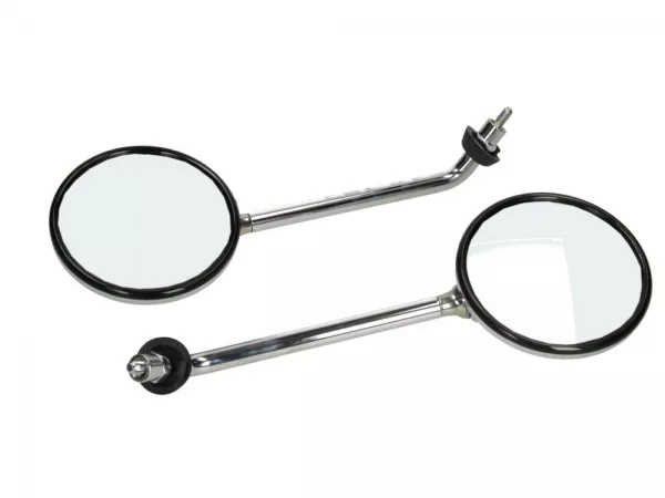 Except for the Vespa S range all mirrors are secured with a M8 nut underneath the head set cover. This makes them interchangeable. If you don't like the standard Vespa mirrors look than we do have two very high quality mirrors for you: The bgm GTII and the bgm CNC. The CNC one is -as the name suggests- CNC machined. This gives a very high quality finish and at least with a look in the blue coloured glass of it you get the Audi R8 feeling. The GTII gives a very well elaborated Granturismo design. Once again a striking finish and the beautiful coloured glass.