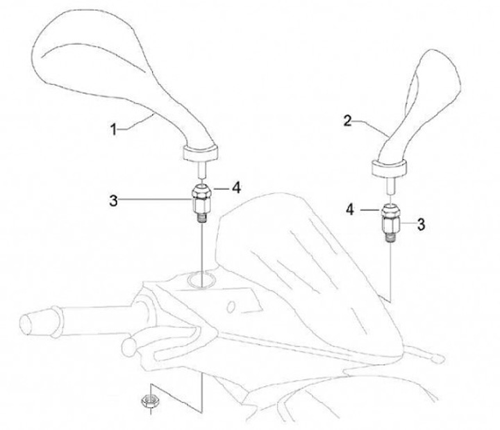Mirror holder -PIAGGIO- Vespa S 50-150, Piaggio NRG Power Purejet 50, Gilera Runner 50 SP, Runner VX 125, Runner VXR 200 - M8 right-hand thread