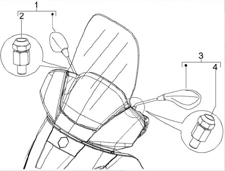 Mirror -OEM QUALITY- Vespa X7 125, X7 250, X7 300 - black - left - M10 right-hand thread