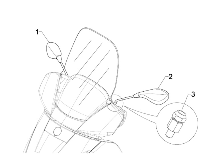 Mirror -OEM QUALITY- Vespa X7 125, X7 250, X7 300 - black - left - M10 right-hand thread