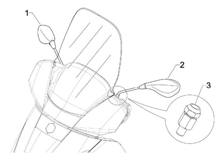 Mirror -OEM QUALITY- Vespa X7 125, X7 250, X7 300 - black - left - M10 right-hand thread