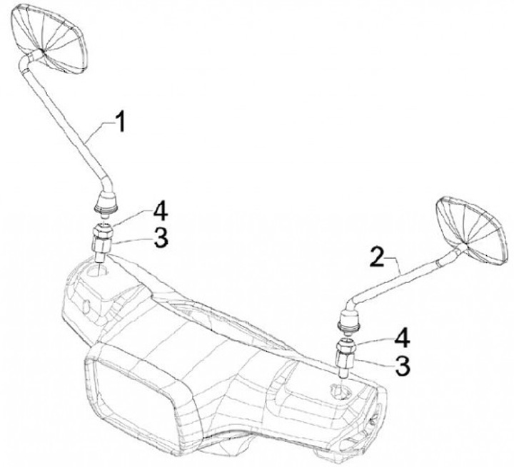 Mirror holder -PIAGGIO- Vespa S 50-150, Piaggio NRG Power Purejet 50, Gilera Runner 50 SP, Runner VX 125, Runner VXR 200 - M8 right-hand thread