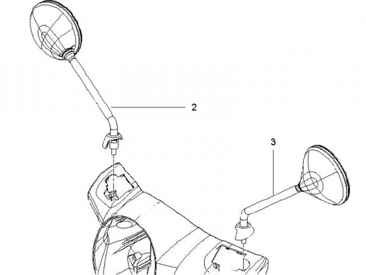 Mirror, rhs -PIAGGIO- Vespa GT L 125 (ZAPM31101), Vespa GTS 125 (ZAPM31300), Vespa GTS 250 (ZAPM45100, ZAPM45101), Vespa GTS 300 (ZAPM45200, ZAPM45202), Vespa GTS Super 125 (ZAPM45300), Vespa GTS Super 300 (ZAPM45200, ZAPM45202)