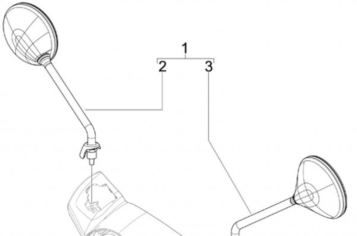 Mirror, lhs -PIAGGIO- Vespa GT L 125 (ZAPM31101), Vespa GTS 125 (ZAPM31300), Vespa GTS 250 (ZAPM45100, ZAPM45101), Vespa GTS 300 (ZAPM45200, ZAPM45202), Vespa GTS Super 125 (ZAPM45300), Vespa GTS Super 300 (ZAPM45200, ZAPM45202)