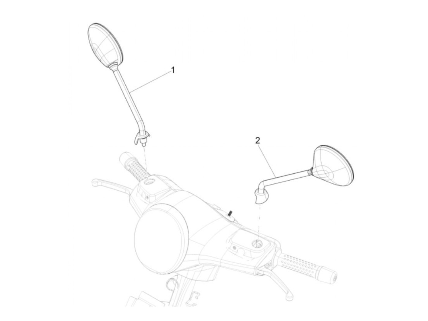 Mirror, chrome, rhs -PIAGGIO- Vespa GTS 125 (ZAPMA3700), Vespa GTS HPE 300 (ZAPMA3600, ZAPMD310), Vespa GTS Super 125 (ZAPMA3700), Vespa GTS Super HPE 300 (ZAPMA360, ZAPMD3100)
