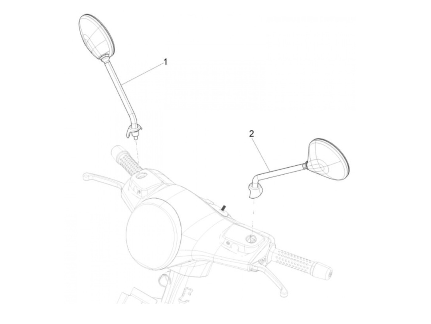Mirror, chrome, lhs -PIAGGIO- Vespa GTS 125 (ZAPMA3700), Vespa GTS HPE 300 (ZAPMA3600, ZAPMD310), Vespa GTS Super 125 (ZAPMA3700), Vespa GTS Super HPE 300 (ZAPMA360, ZAPMD3100)