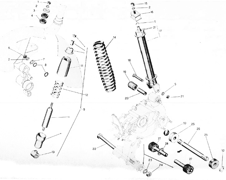 Fork - mudguard - front brake hub