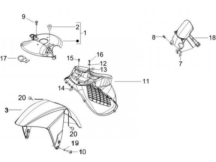 Cover fork/frame -GILERA- Runner (since 2006) (ZAPC461, ZAPC462, ZAPM461, ZAPM462, ZAPM463, ZAPM464), Piaggio NRG (SAL1T, ZAPC18) NRG Extreme (ZAPC21, ZAPC22), NRG MC2 (ZAPC04), NRG MC3 (ZAPC21, ZAPC32), NRG Power (ZAPC45), NTT (SAL1T)