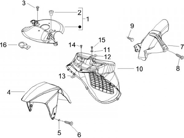 Rear mudguard -PIAGGIO- Gilera Nexus 125 (ZAPM35500, ZAPM35700), Gilera Nexus 250 (ZAPM35300, ZAPM35400), Gilera Nexus 300 (ZAPM35600), Gilera Runner 125 (ZAPM46100, ZAPM46300, ZAPM46301), Gilera Runner 200 (ZAPM46200, ZAPM46400, ZAPM46401), Aprilia SR Ma