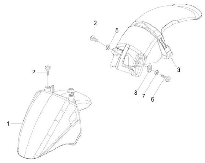 Rear mudguard -PIAGGIO- Vespa ET2 50 (ZAPC12000, ZAPC38100), Vespa ET4 125 (ZAPM19000), Vespa ET4 50 50 (ZAPC26000, ZAPC26100), Vespa LT 125 (RP8M66503), Vespa LT 150 (RP8M66603), Vespa LX 125 (ZAPM68300, ZAPM68303), Vespa LX 150 (ZAPM68400), Vespa LX 50