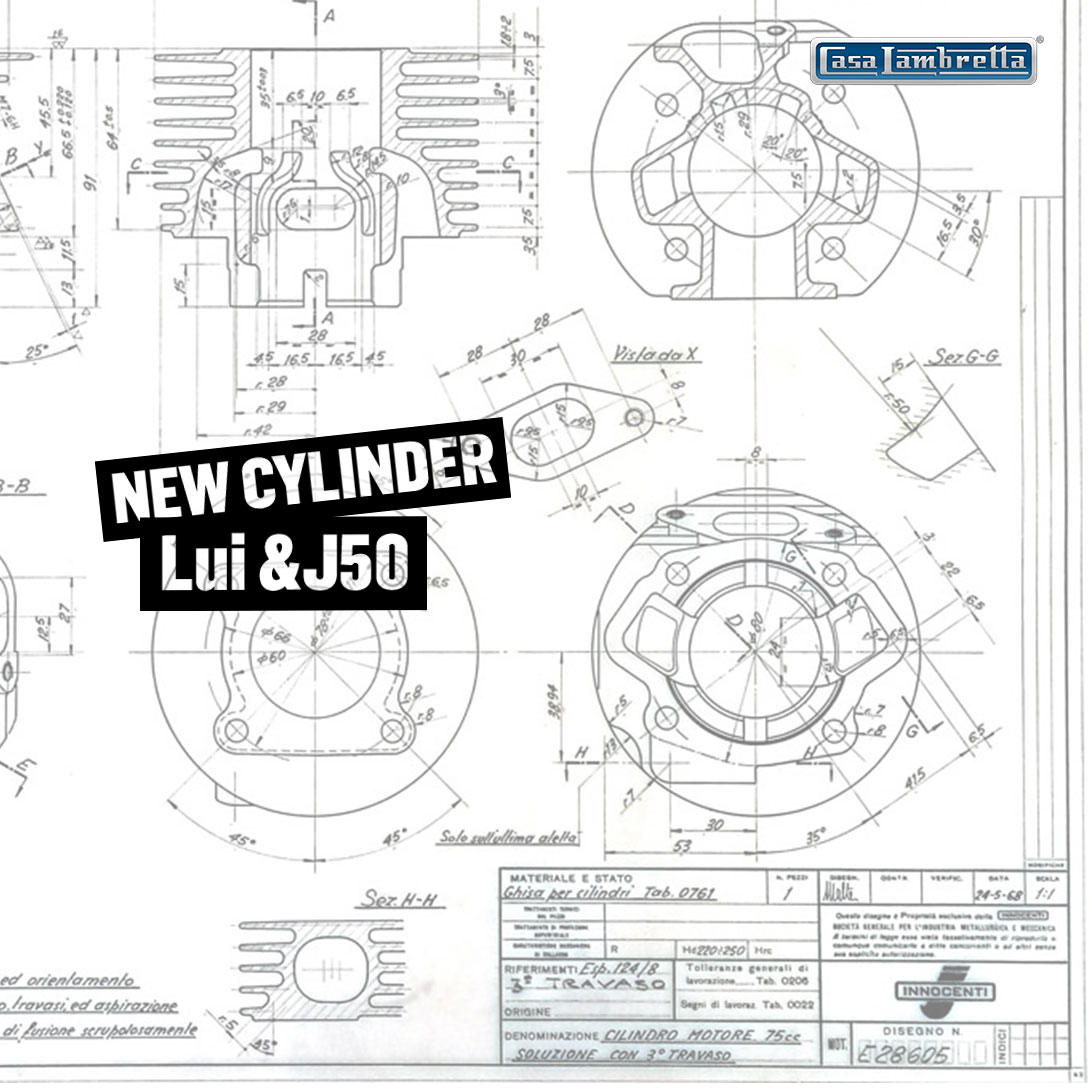 We will soon have the exact cylinder from the technical drawings. Vittorio Tessera from CASA LAMBRETTA has turned Innocenti's plans into reality and made the 80 cc cylinder a reality