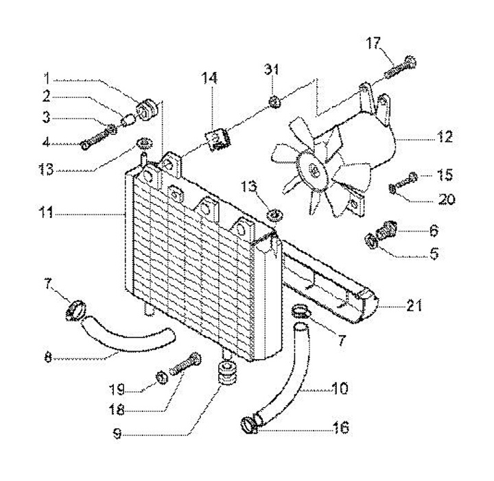 Radiator -PIAGGIO- Gilera Runner 125-180 FX-FXR, Runner 125-200 VX-VXR (-2005), Piaggio Beverly 125-200, X9 125-250, X9 Evo 125-250