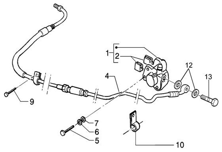 Brake caliper, rear -PIAGGIO- Gilera Runner 1 50 (ZAPC1400000001001, ZAPC3620000004739, ZAPC364000001001, ZAPC3620000001001, ZAPC3610000001001), Gilera Runner 2 (RST) 50 (ZAPC46100, ZAPC46200), Gilera Stalker 50 (ZAPC13000), Piaggio NRG 50 (ZAPC3200000001
