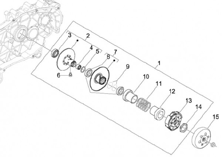 Pulley unit with clutch -PIAGGIO- Piaggio 50 cc Ø=134mm (since 2000)