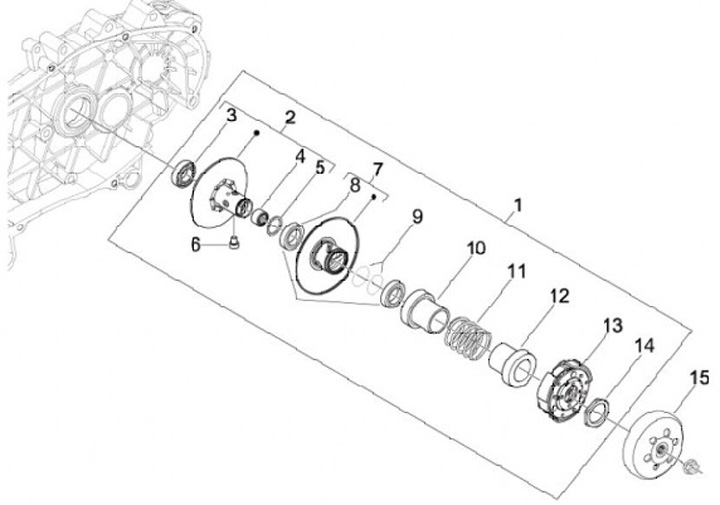 Pulley unit with clutch -PIAGGIO- Piaggio 50 cc Ø=134mm (since 2000)