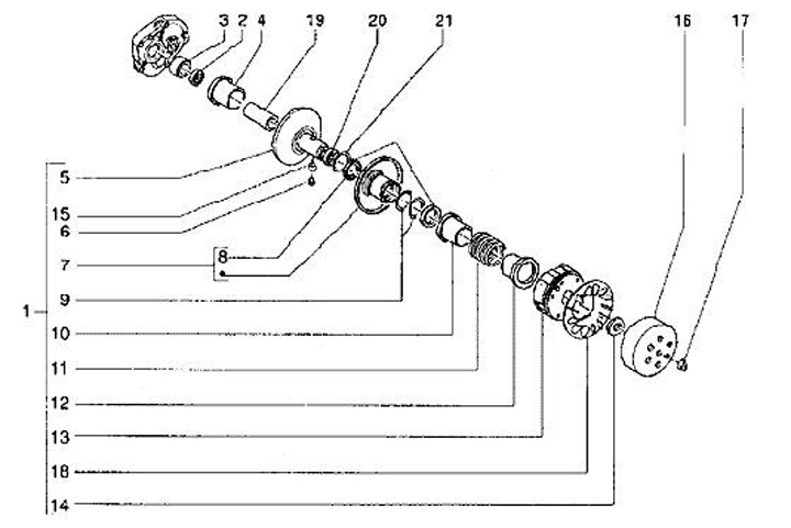 Clutch -PIAGGIO- Piaggio 125-150cc 2-stroke - Gilera Runner 125 (ZAPM07000), Piaggio Hexagon 125 (EXS1T, ZAPM05000), Piaggio Hexagon 150 (EXV1T), Piaggio Skipper 125 (ZAPM12000), Piaggio Skipper 150 (ZAPM13000), Piaggio SKR 125 (CSM1T), Piaggio SKR 150 (C