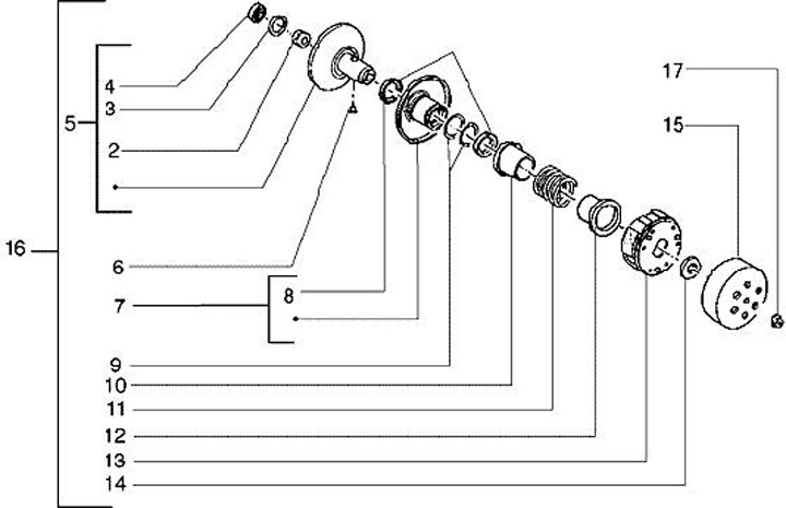 Pulley unit with clutch -PIAGGIO- Vespa ET2 50, ET2 inietione 50, LX 50, LXV 50, S 50, Piaggio Liberty 50, Zip II 50, Fly 100, Free 50, Free 100, TPH 50, NRG MC3 50, Gilera Stalker, Aprilia Scarabeo 100, Derbi Atlantis 100