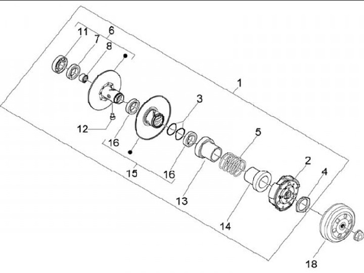 Pulley unit with clutch -PIAGGIO- Piaggio 50 cc Ø=134mm (since 2000)