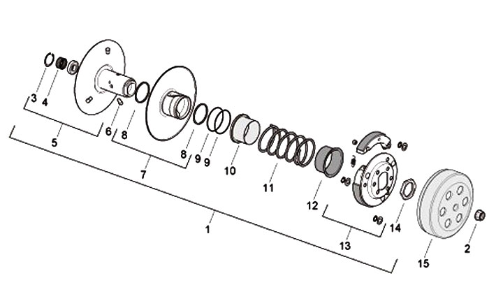 Clutch -PIAGGIO- Vespa Primavera 50 (ZAPC53200), Vespa Sprint 50 (ZAPC53201, ZAPC53301, ZAPC53303), Gilera DNA 50 (ZAPC27000), Gilera Runner 50 (ZAPC14000, ZAPC36100, ZAPC36200, ZAPC36400, ZAPC46100, ZAPC46200, ZAPC46300), Gilera Storm 50 (ZAPC29000), Pia