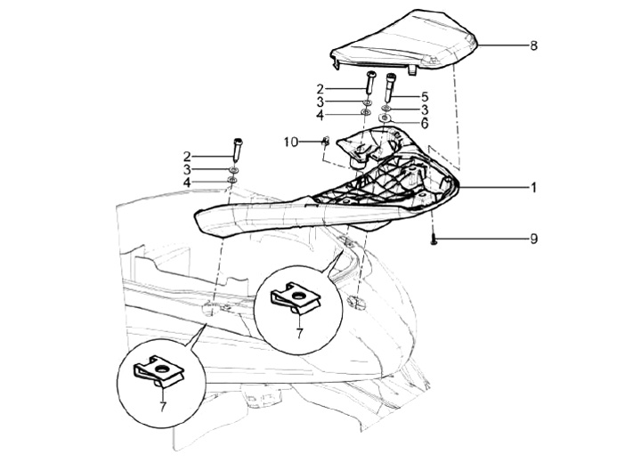 Mounting clip for body parts -PIAGGIO- Vespa, Piaggio, Aprilia