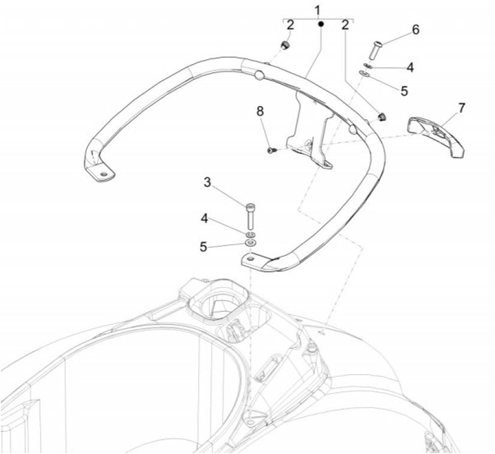 Cover for rear rack/grab handle -PIAGGIO- Vespa LX50, LX125, LX150, Vespa LXV50, LXV125, Vespa S50, S125, S150, GT, GTL, GTS - chrome