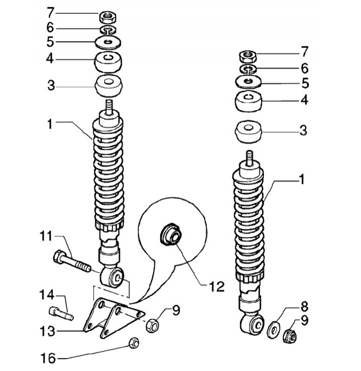 Bushing for rear shock absorber, left -PIAGGIO- Vespa GT 250 (ZAPM45102), Vespa GT L 125 (ZAPM31101), Vespa GTS 125 (ZAPM31300, ZAPMA3100, ZAPMA3200, ZAPMA3700), Vespa GTS 150 (ZAPMA3200, ZAPMA3100), Vespa GTS 250 (ZAPM45100, ZAPM45101), Vespa GTS 300 (ZA