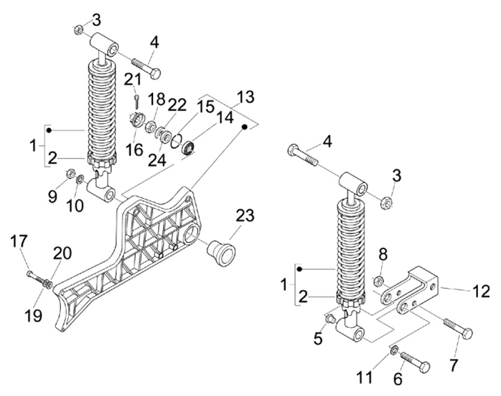 Screw with flansh -M10 x 55mm- -PIAGGIO- (used for shock-absorber/engine Piaggio Automatic)