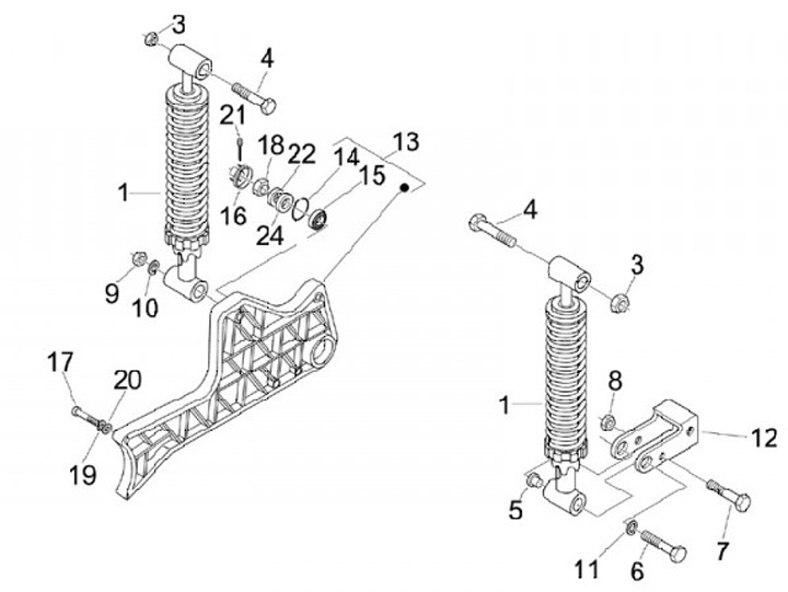 Screw with flansh -M10 x 55mm- -PIAGGIO- (used for shock-absorber/engine Piaggio Automatic)