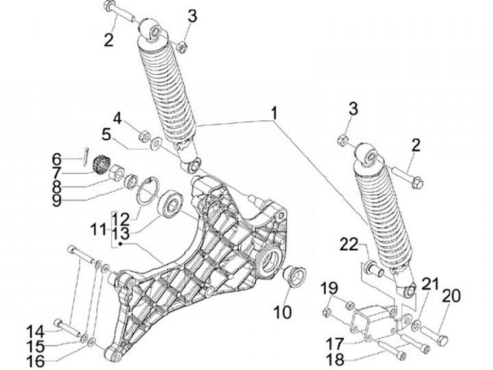 Screw with flansh -M10 x 55mm- -PIAGGIO- (used for shock-absorber/engine Piaggio Automatic)
