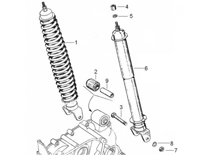 Shock absorber rear -OEM QUALITY, 320mm- Vespa PK50 S/XL, PK80 S/XL, PK125 S/XL