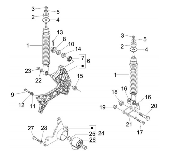 Shock absorber mount on engine, left -PIAGGIO- Vespa GT 250 (ZAPM45102), Vespa GT L 125 (ZAPM31100, ZAPM31101), Vespa GT L 200 (ZAPM31200), Vespa GTS 125 (ZAPM31300), Vespa GTS 250 (ZAPM45100, ZAPM45101), Vespa GTS 300 (ZAPM45200, ZAPM45202, ZAPMA3300), V