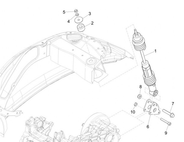 Shock absorber, rear -PIAGGIO- Vespa Primavera 125 (ZAPM81100, ZAPM81101, ZAPMA1100, RP8M82500, RP8M82821, RP8M82100, RP8M82310, ZAPMA1101, ZAPMD1100), Vespa Primavera 150 (ZAPM81200, ZAPMA1200, ZAPM81201, ZAPMA1201, ZAPMD120), Vespa Sprint 125 (ZAPM81300