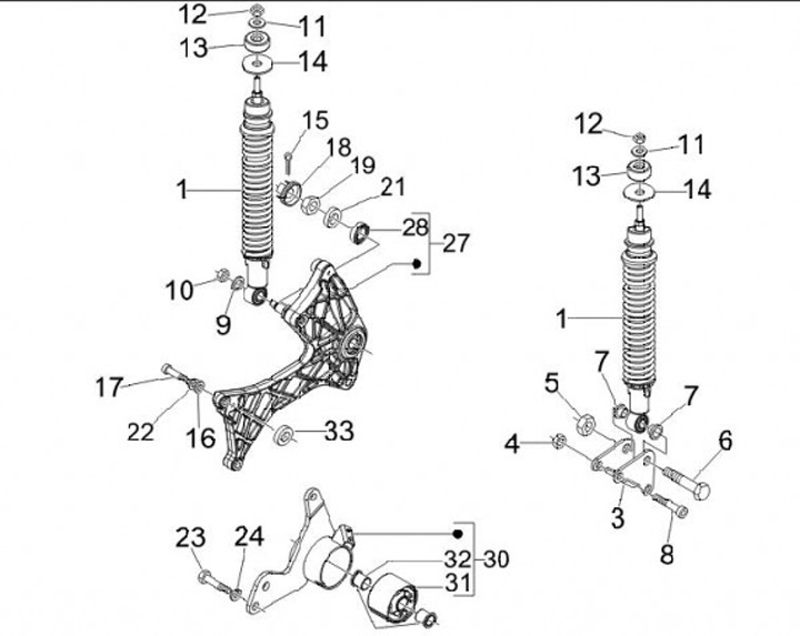 Shock absorber mount on engine, left -PIAGGIO- Vespa GT 250 (ZAPM45102), Vespa GT L 125 (ZAPM31100, ZAPM31101), Vespa GT L 200 (ZAPM31200), Vespa GTS 125 (ZAPM31300), Vespa GTS 250 (ZAPM45100, ZAPM45101), Vespa GTS 300 (ZAPM45200, ZAPM45202, ZAPMA3300), V