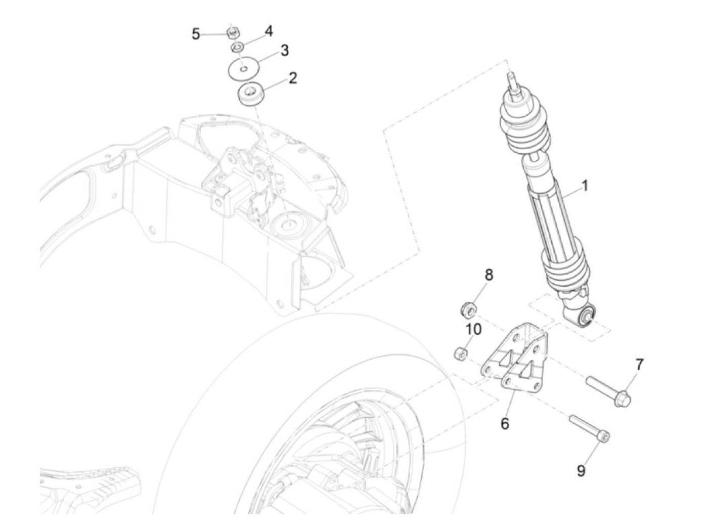 Shock absorber, rear -PIAGGIO- Vespa Primavera 125 (ZAPMA1100, ZAPMA1101, ZAPMD1100), Vespa Primavera 150 (ZAPMA1200, ZAPMA1201, ZAPMD120), Vespa Sprint 125 (ZAPMA1300, ZAPMA1301, ZAPMD1101), Vespa Sprint 150 (ZAPMD1201), Vespa Elettrica Elektro (ZAPCB010
