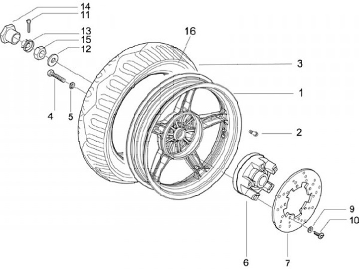 Rear hub nut -PIAGGIO- Vespa PX (1984-), T5 125cc, PK XL, Cosa, Piaggio automatic, Gilera automatic
