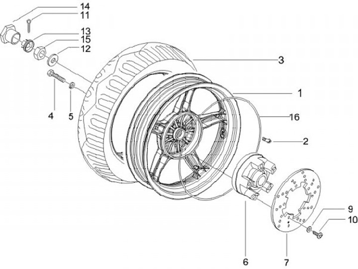 Rear hub nut -PIAGGIO- Vespa PX (1984-), T5 125cc, PK XL, Cosa, Piaggio automatic, Gilera automatic