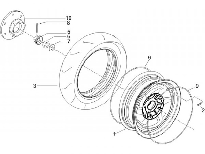 Rear hub nut -PIAGGIO- Vespa PX (1984-), T5 125cc, PK XL, Cosa, Piaggio automatic, Gilera automatic
