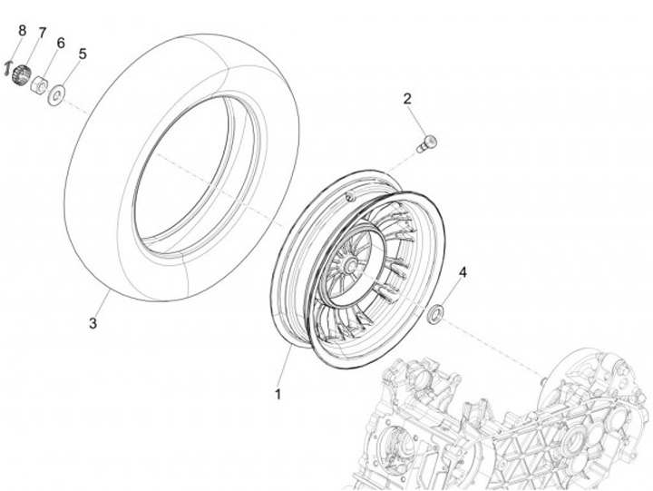 Wheel rim, rear -PIAGGIO 3.00-12 inch, Ø brake drum = 140mm - 14 spokes- Vespa Sprint 50 (ZAPC53101), Sprint 125, Sprint 150 - silver