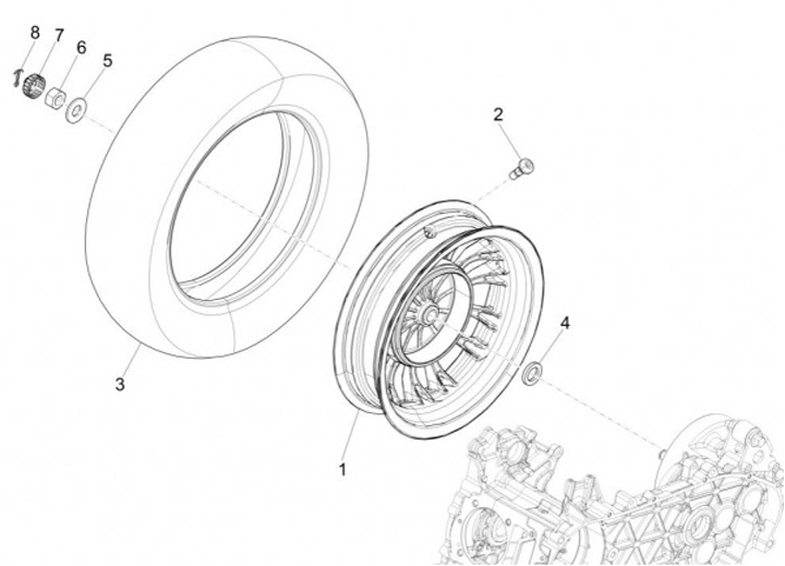 Wheel rim, rear -PIAGGIO 3.00-12 inch, Ø brake drum = 110mm - 14 spokes- Vespa Sprint 50 (ZAPC53201) - silver