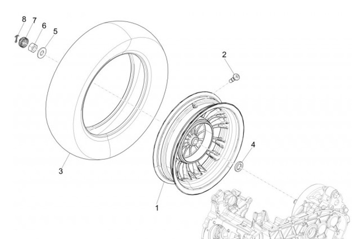 Wheel rim, rear -PIAGGIO 3.00-12 inch, Ø brake drum = 140mm - 14 spokes- Vespa Sprint 50 (ZAPC53101), Sprint 125, Sprint 150 - silver