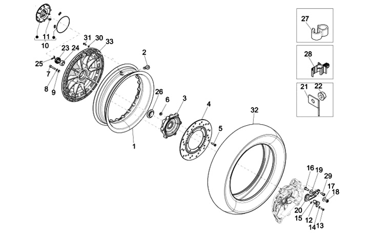 Rear hub nut -PIAGGIO- Vespa PX (1984-), T5 125cc, PK XL, Cosa, Piaggio automatic, Gilera automatic